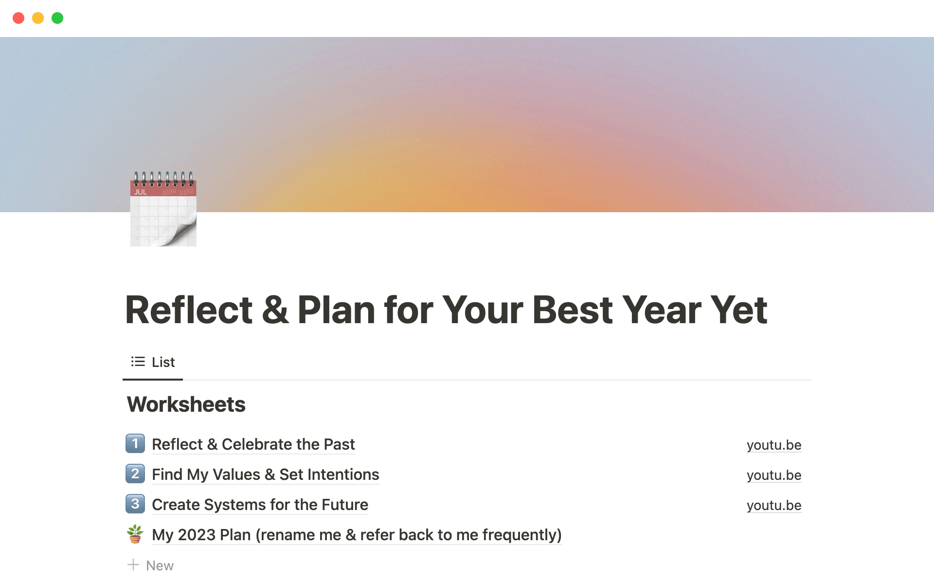 Whether you're looking to reflect on the past year, plan for the next, or rethink your current setup, YouTuber Rowena Tsai has you covered. By using her set of worksheets and following along with her companion video series, you'll be guided through each step with thoughtful prompts and emerge at the end with a system built just for you.
