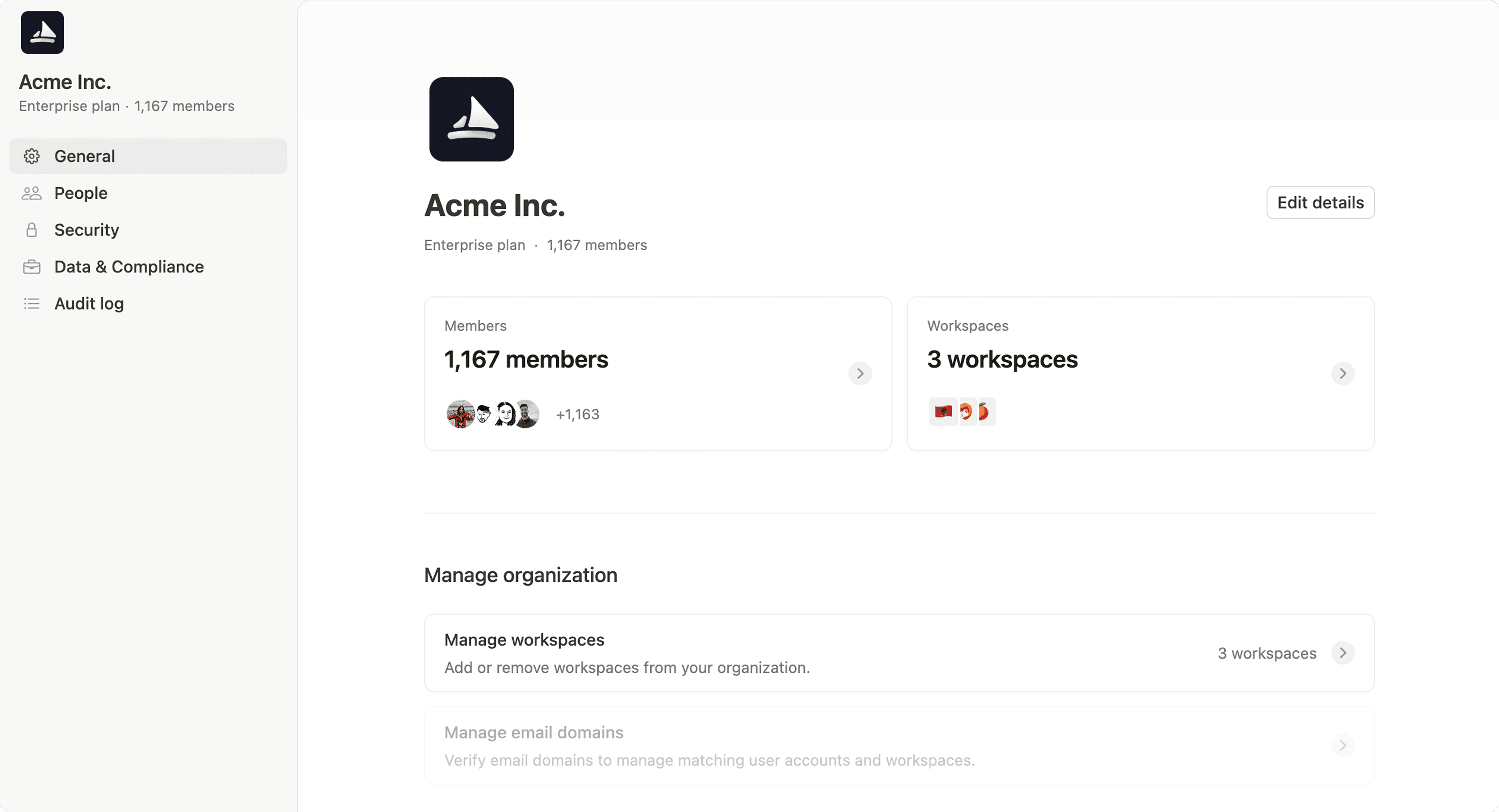 조직 소유자로 추가되면 워크스페이스 토글 아래 오른쪽 상단에 있는 설정 링크를 통해 콘솔에 접근할 수 있습니다. 자세한 내용은 여기에서 확인할 수 있습니다.